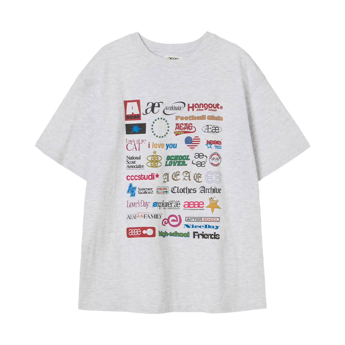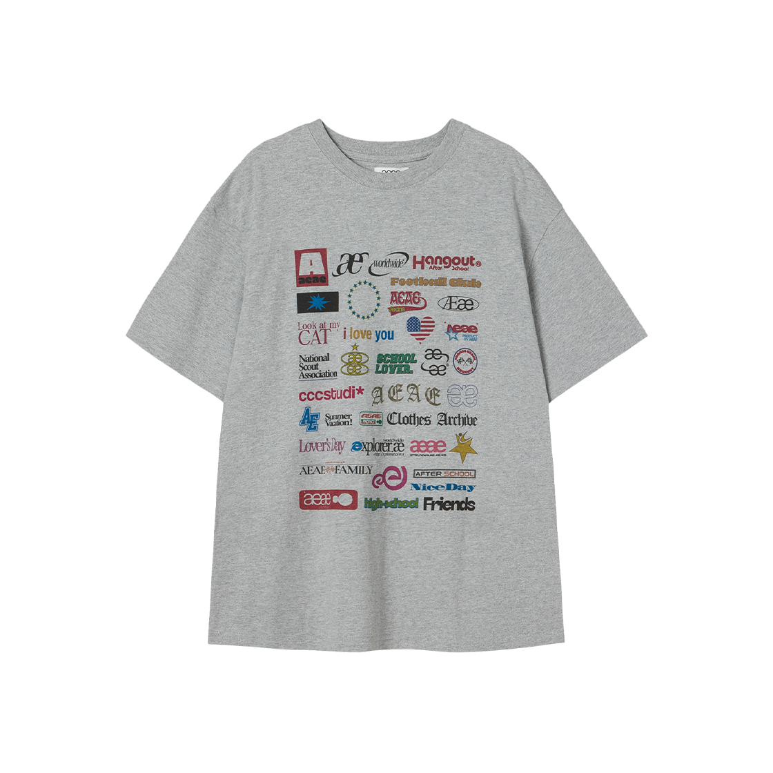 에이이에이이 스티커 티셔츠 멜란지 그레이