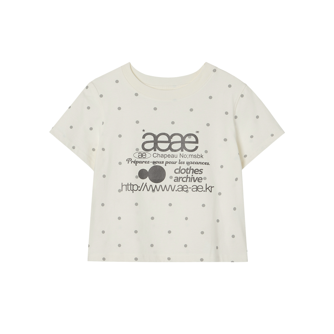 에이이에이이 웹 로고 도트 크롭 티셔츠 크림