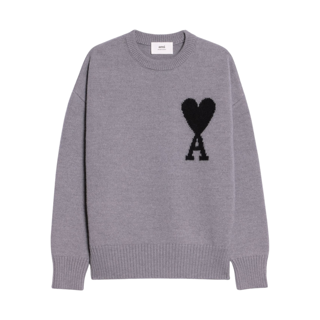 아미 빅 하트 로고 오버사이즈 인타르시아 스웨터 그레이 블랙
