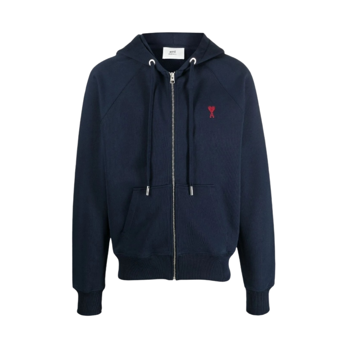 아미 하트 로고 코튼 후드 집업 나이트 블루