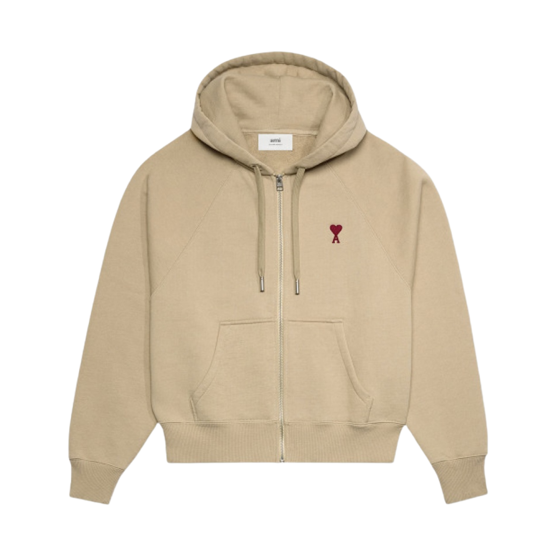 아미 스몰 하트 로고 루프백 오가닉 코튼 플리스 후드 집업 헤더 애쉬 그레이