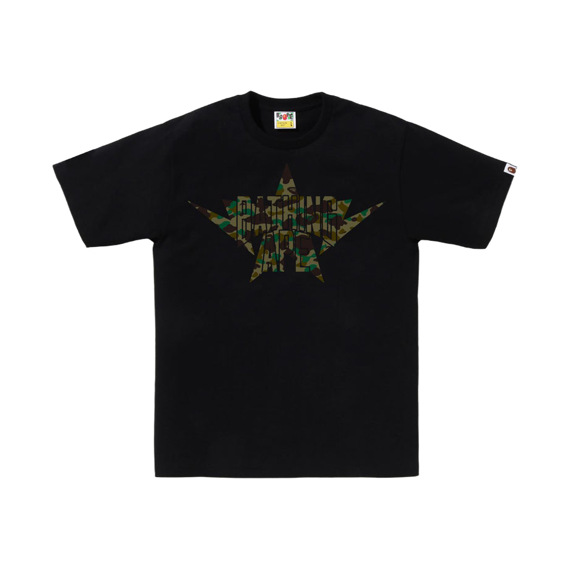 베이프 퍼스트 카모 크레이지 스타 컬리지 티셔츠 블랙