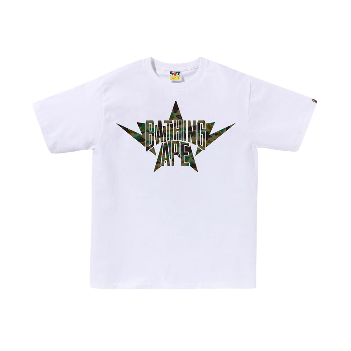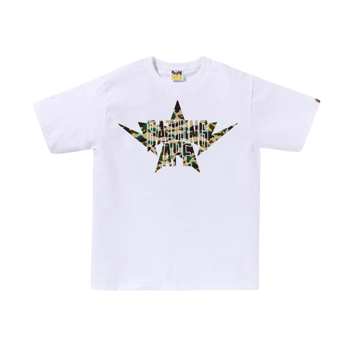 베이프 ABC 카모 베이프 스타 로고 티셔츠 화이트 그린