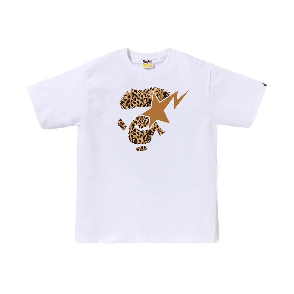 베이프 와일드 레오파드 패턴 에이프 페이스 스타 티셔츠 화이트