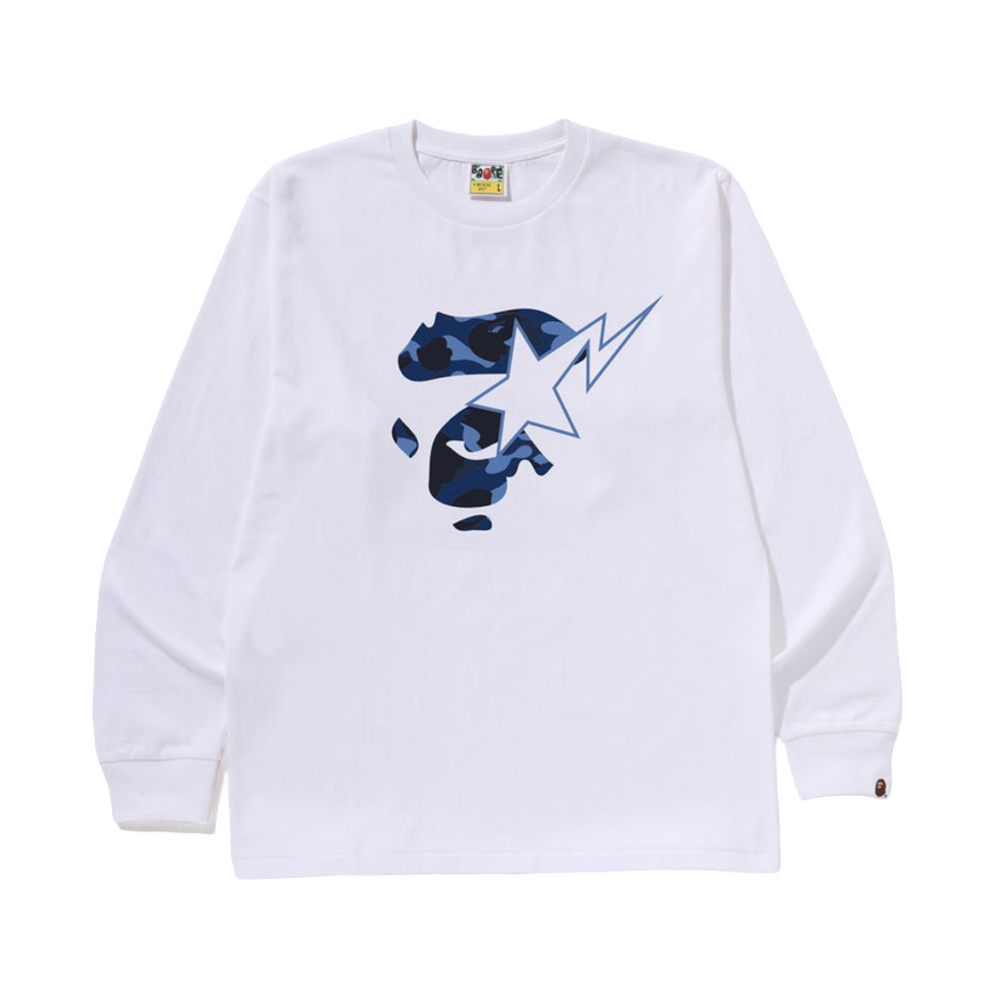 베이프 컬러 카모 에이프 페이스 스타 롱슬리브 티셔츠 화이트 네이비