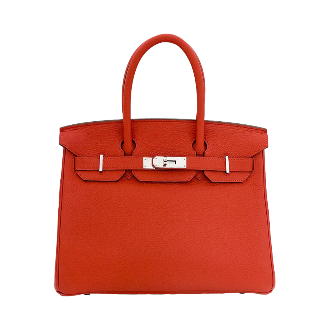 에르메스 토고 오렌지 은장하드웨어 벌킨30 여성 토트백 aa50343