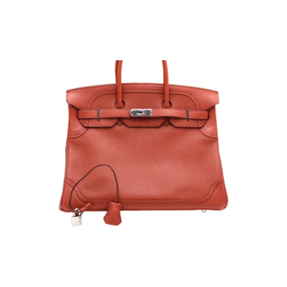 에르메스 토고 오렌지 은장 하드웨어 벌킨 35 여성 토트백 aa48334
