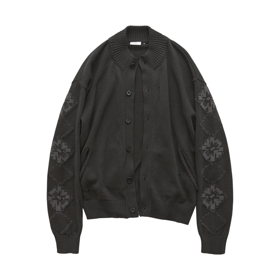 폴리테루 버튼 업 가디건 에스닉 슬리브 차콜