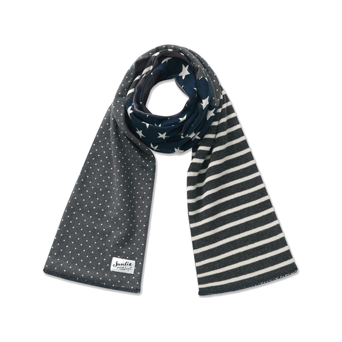 카락터 스트라이프 니트 머플러 블랙 차콜