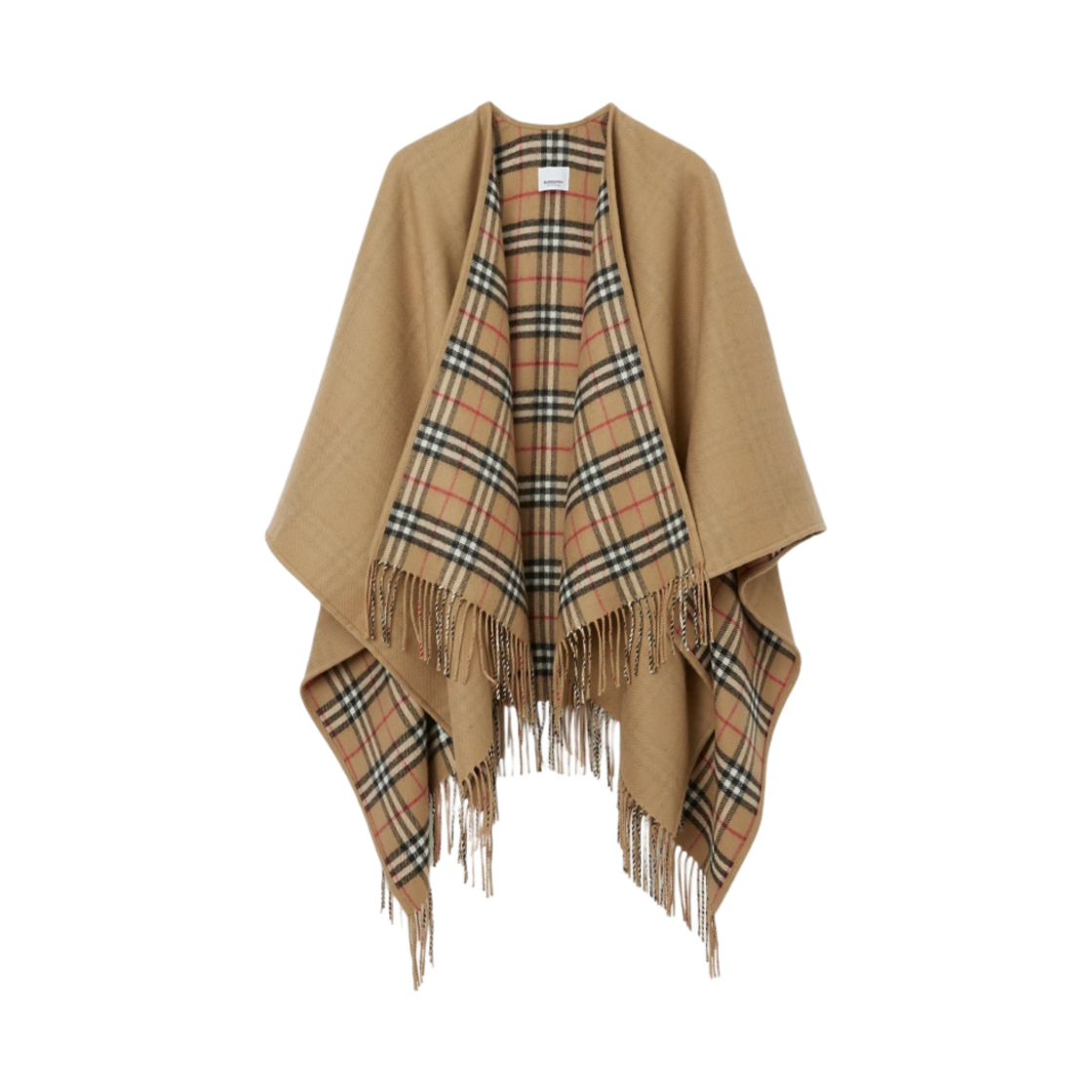 (W) 버버리 체크 울 리버시블 케이프 아카이브 베이지