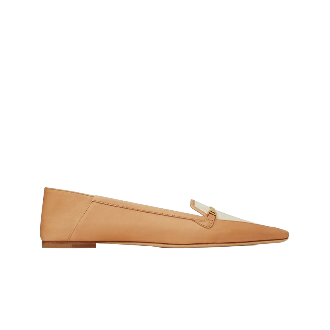 (W) 생로랑 크리스 슬리퍼 베지터블 탠 레더 앤 캔버스 골드 앤 아이보리
