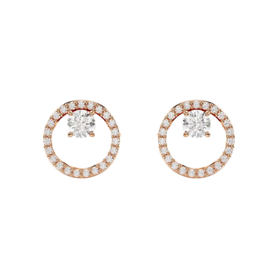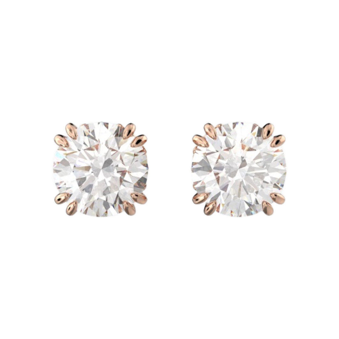 (W) 스와로브스키 콘스텔라 스터드 이어링 라운드 컷 화이트 로즈 골드톤 플래팅