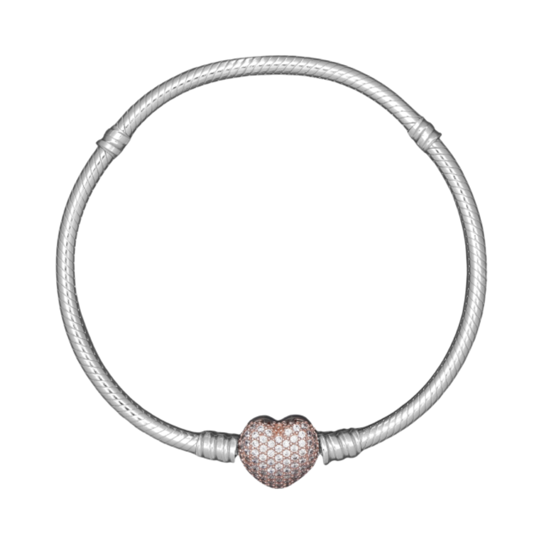 (W) 판도라 모먼트 파베 하트 클래스프 스네이크 체인 브레이슬릿 스털링 실버 로즈 골드 플래팅 클리어