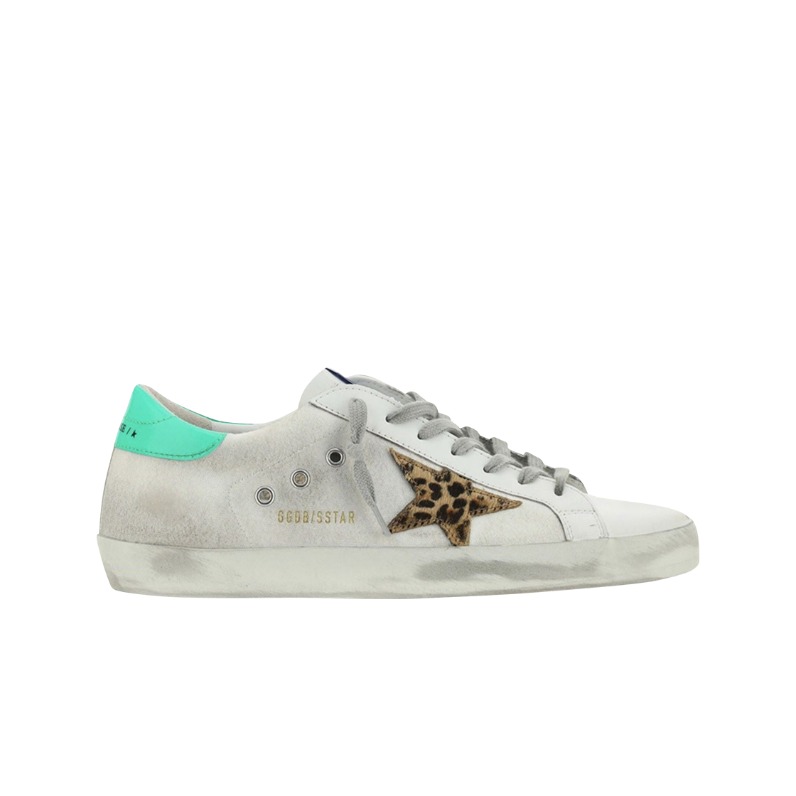 골든구스 슈퍼스타 화이트 레오파드 프린트 그린탭 스니커즈