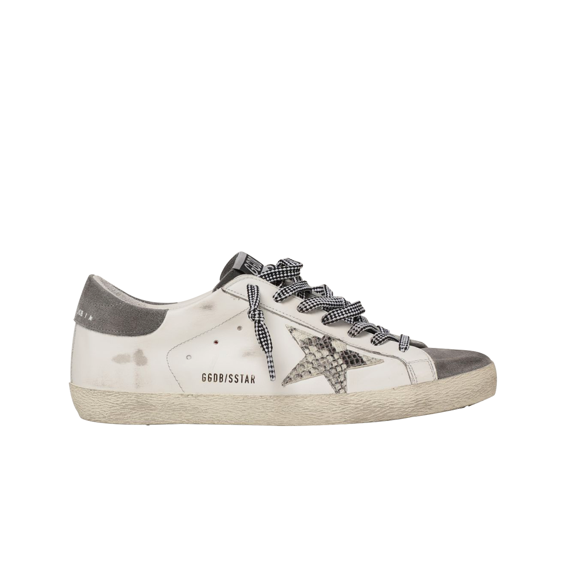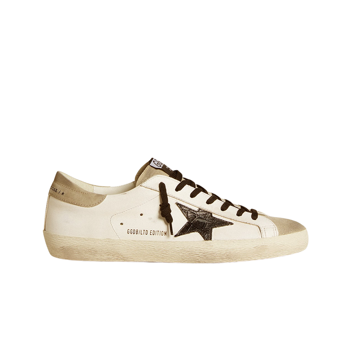 골든구스 화이트 레더 슈퍼스타 LTD 블랙 크로커다일 프린트 도브 그레이 힐 탭 스니커즈