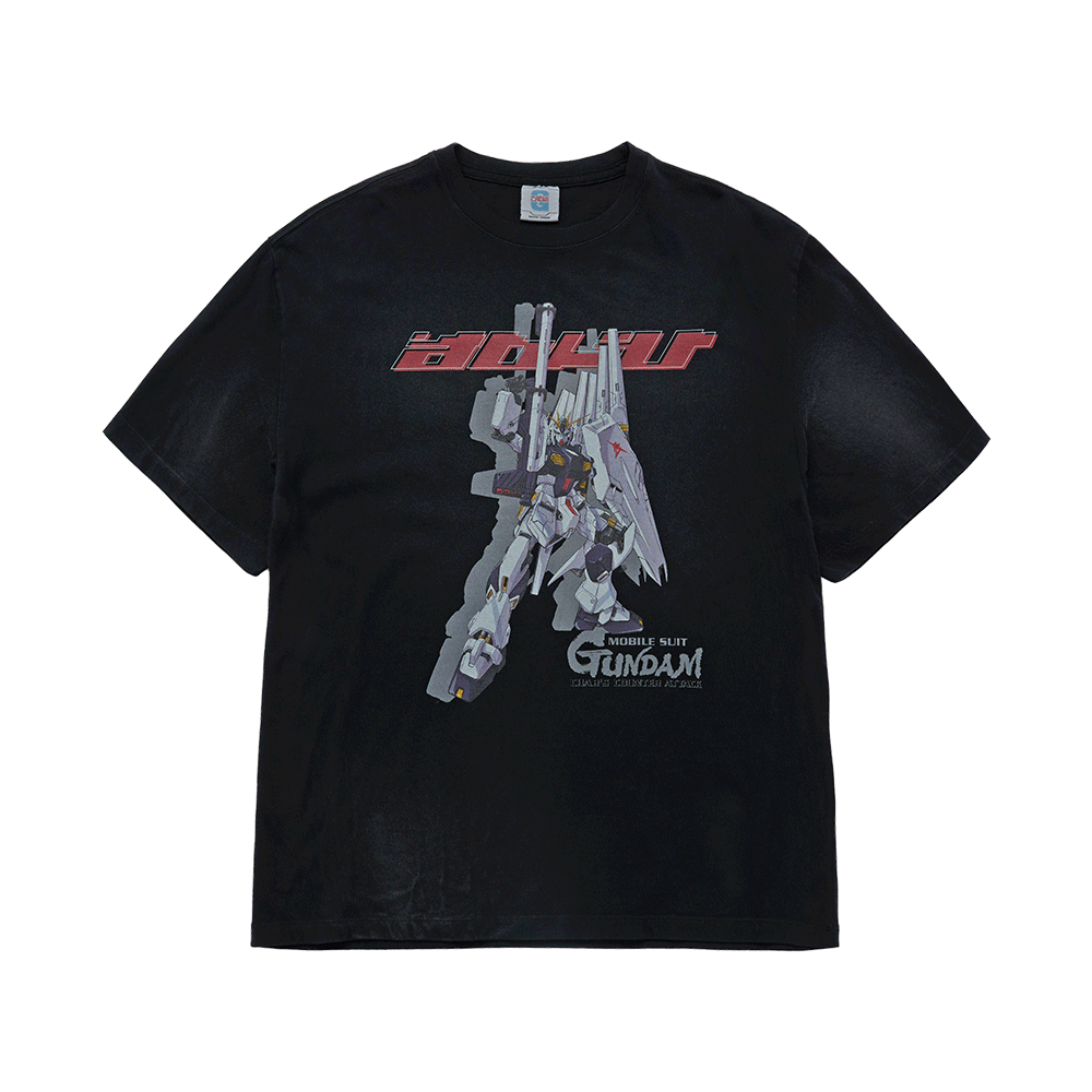 아크메드라비 모빌 슈트 건담 샤아의 역습 워싱 쇼트 슬리브 티셔츠 챠콜