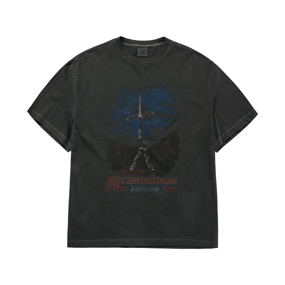 아크메드라비 모빌 슈트 건담 라스트 슈팅 피그먼트 워싱 쇼트 슬리브 티셔츠 챠콜