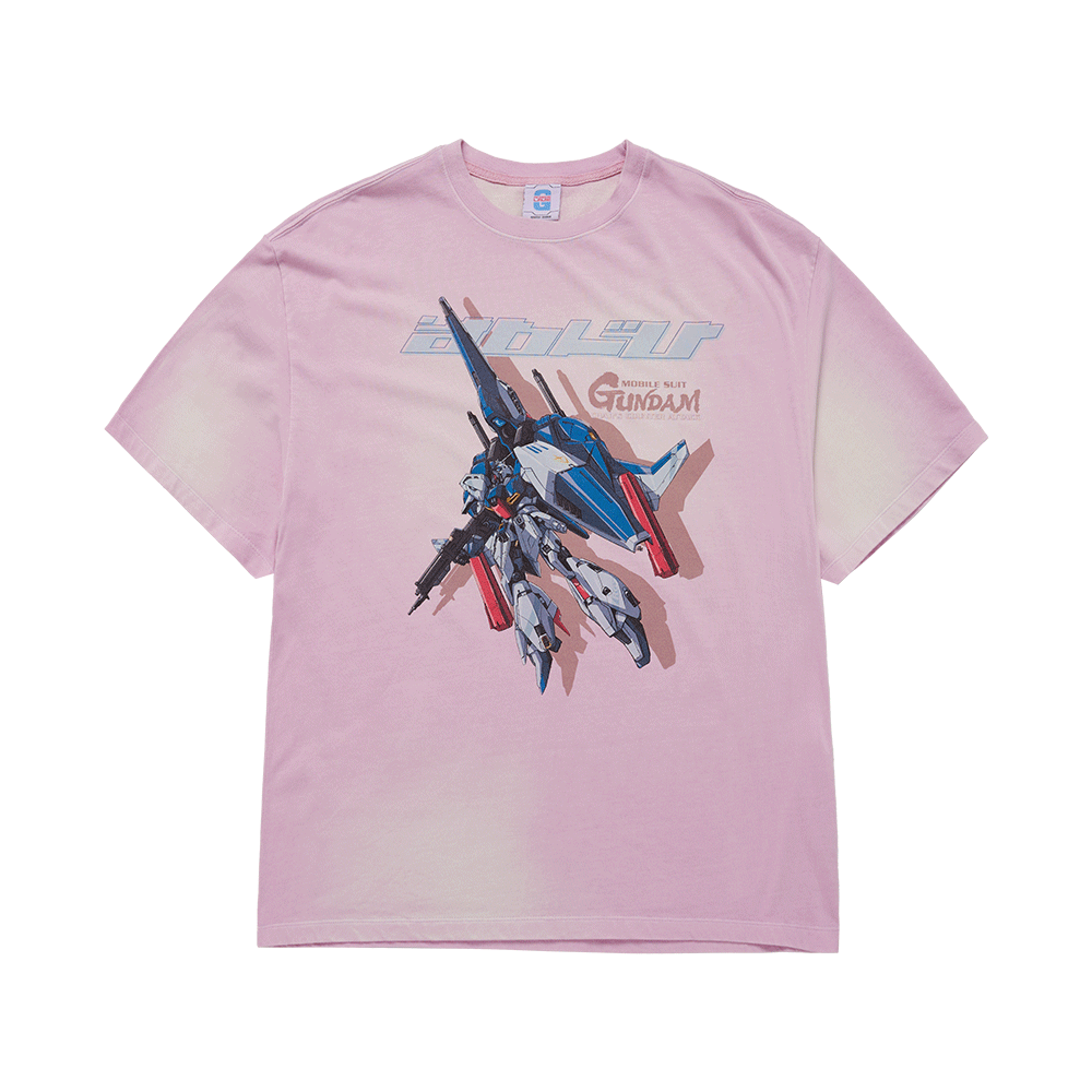 아크메드라비 모빌 슈트 건담 샤아의 역습 워싱 쇼트 슬리브 티셔츠 라이트 핑크