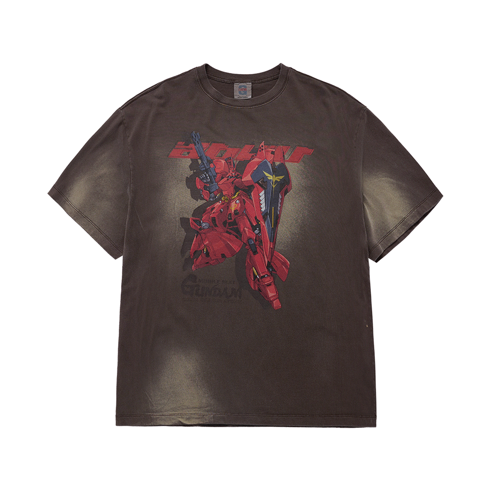 아크메드라비 모빌 슈트 건담 샤아의 역습 워싱 쇼트 슬리브 티셔츠 코코아