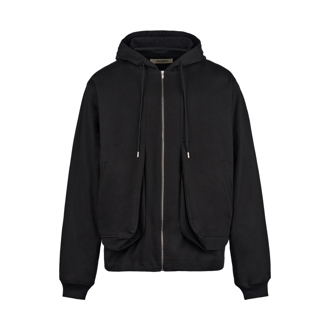 지용 킴 드레이프드 포켓 집업 후드 블랙
