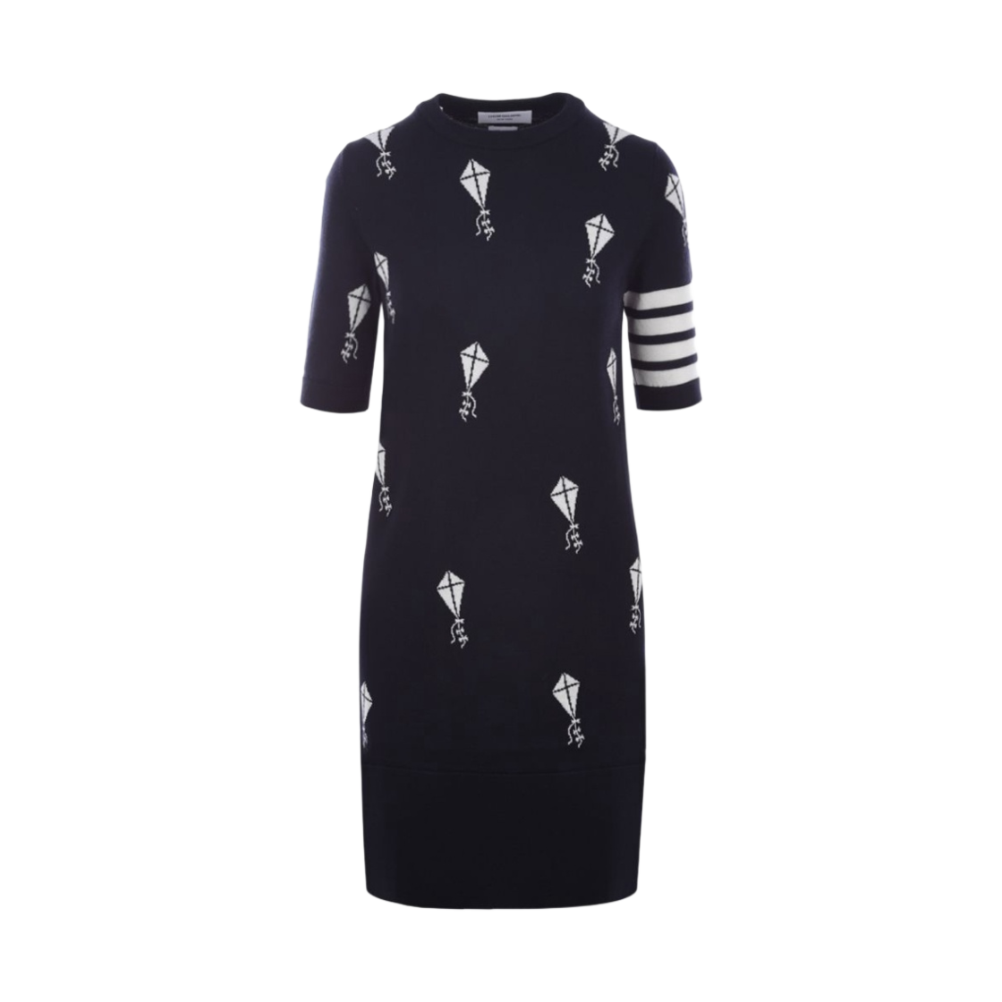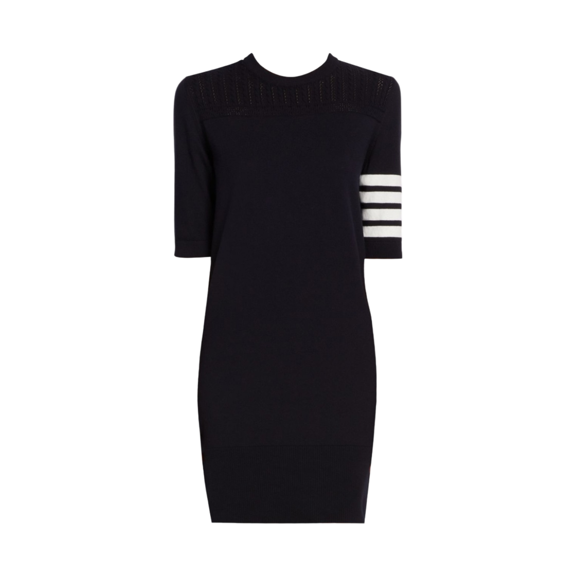 (W) 톰브라운 파인 메리노 울 사선 하프 드롭 스카이 아이콘 숏슬리브 드레스 네이비