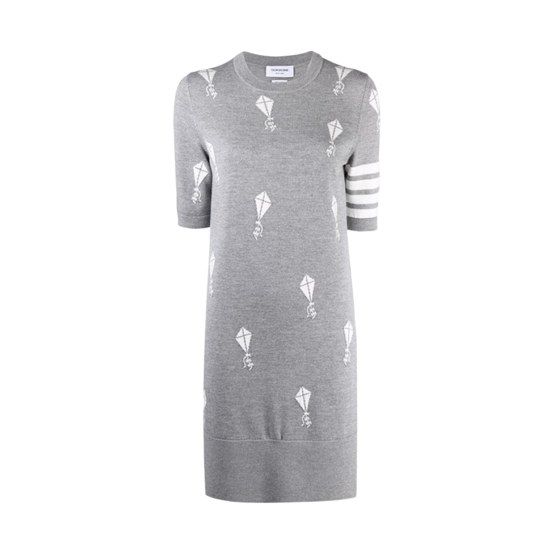 (W) 톰브라운 파인 메리노 울 사선 하프 드롭 스카이 아이콘 숏슬리브 드레스 라이트 그레이