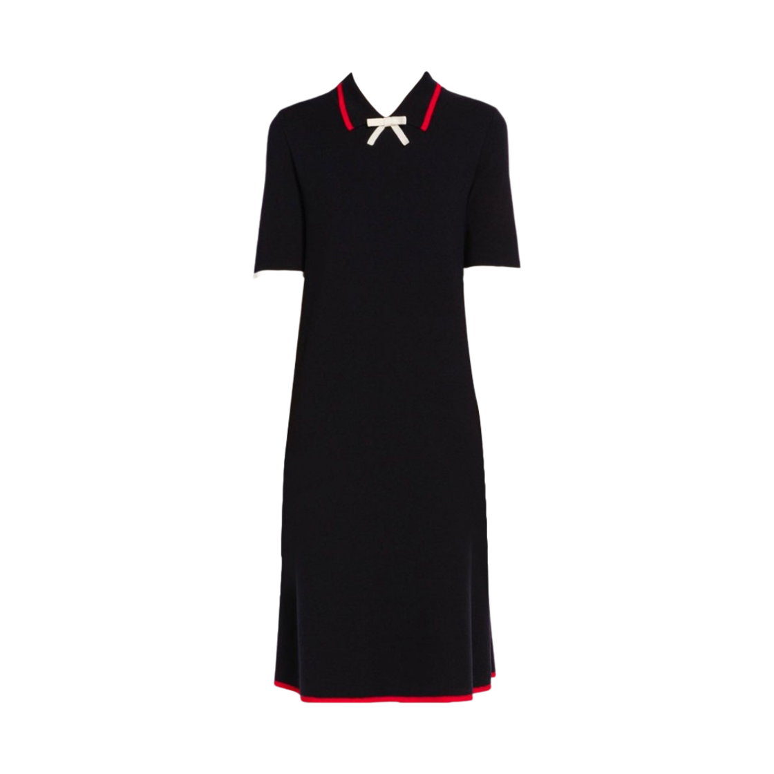 (W) 톰브라운 밀라노 스티치 메리노 티핑 A라인 폴로 드레스 네이비