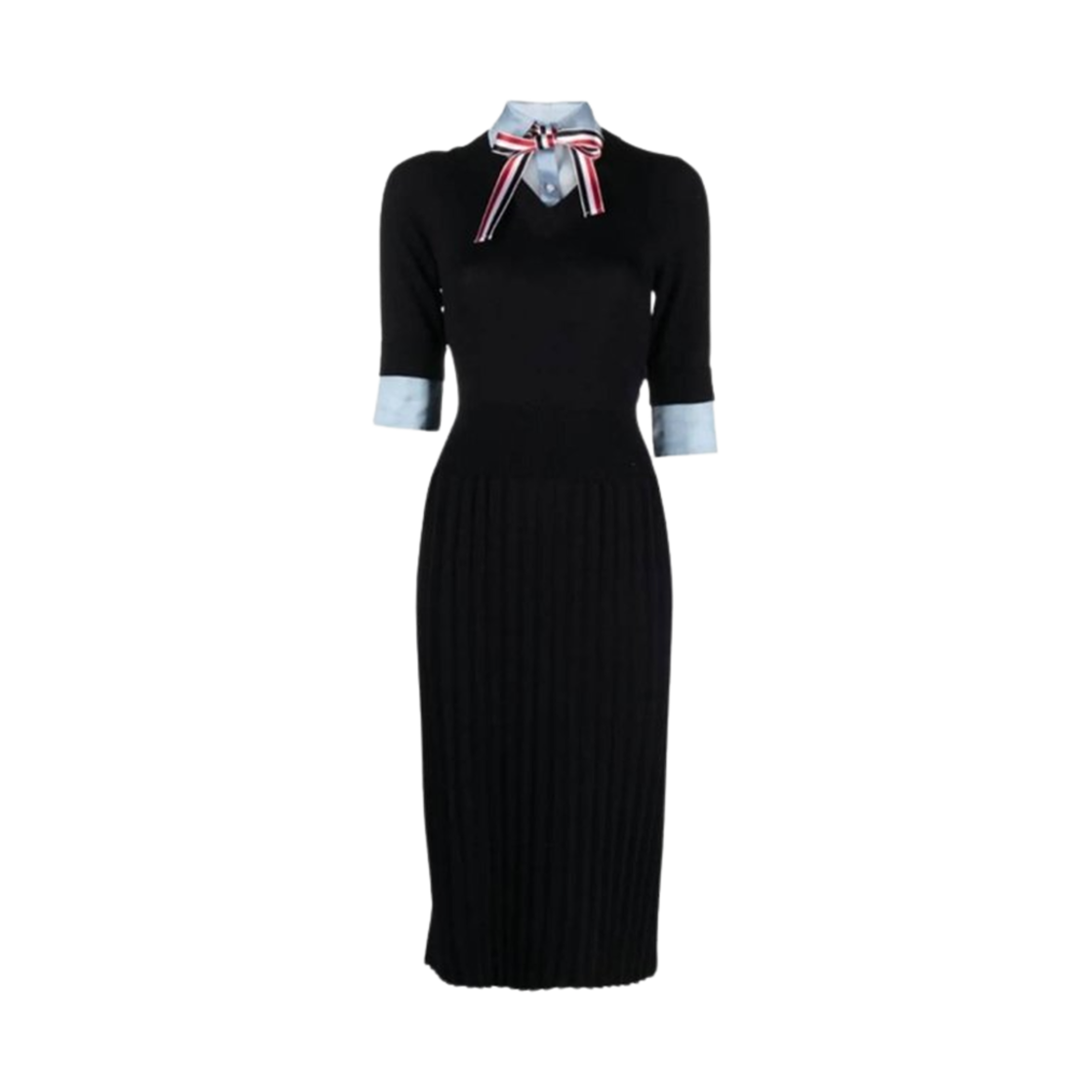(W) 톰브라운 울 저지 플리츠 셔츠 드레스 네이비