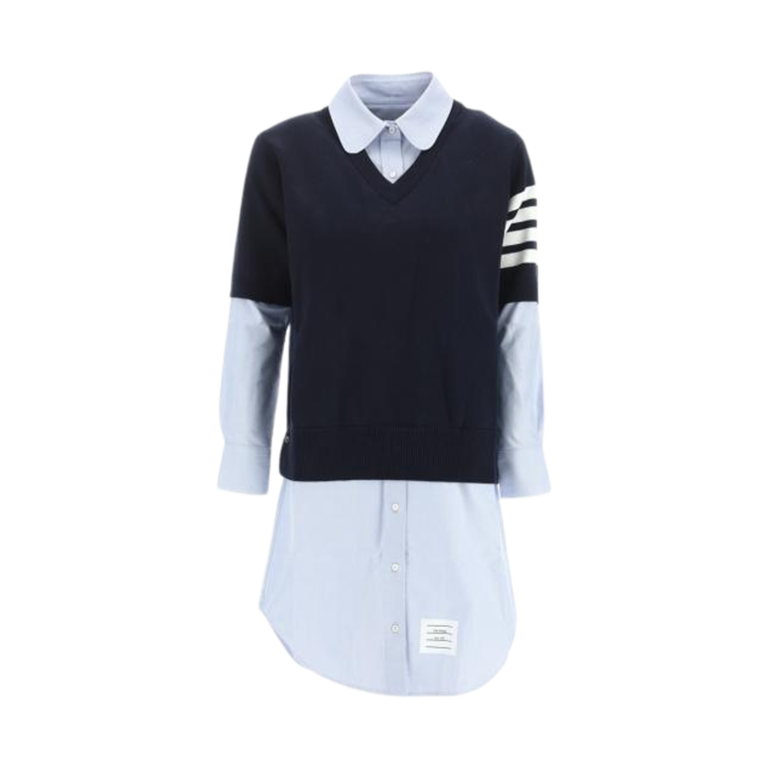 (W) 톰브라운 사선 레이어드 롱 셔츠 네이비 스카이 블루