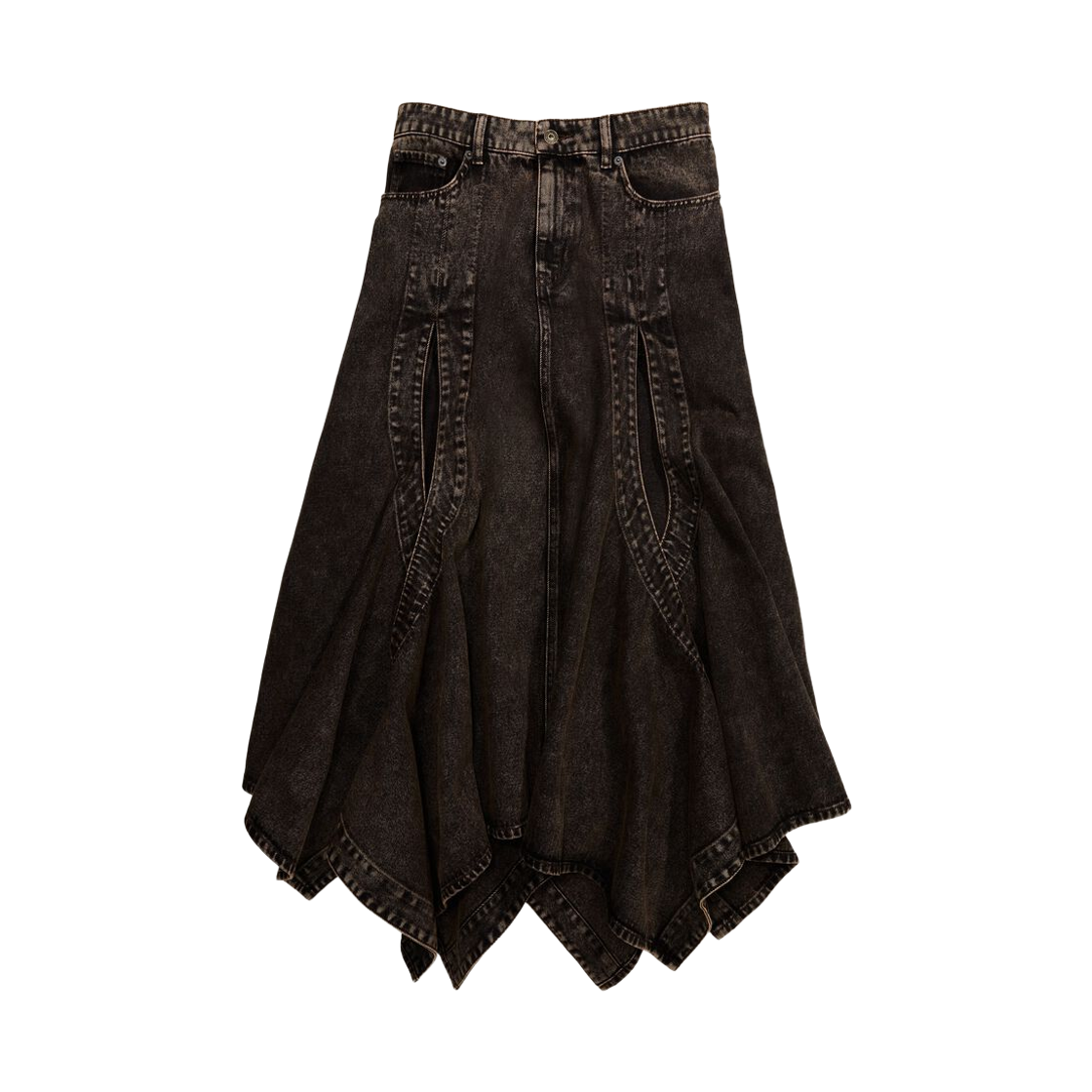 (W) 에이치앤엠 x 글렌 마틴스 플레어 데님 스커트 다크 브라운