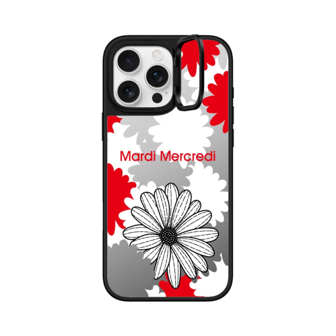 케이스티파이 x 마르디메크르디 아이폰 플라워 카모플라주 레드 맥세이프 미러 링 스탠드 케이스 실버 미러 블랙 범퍼