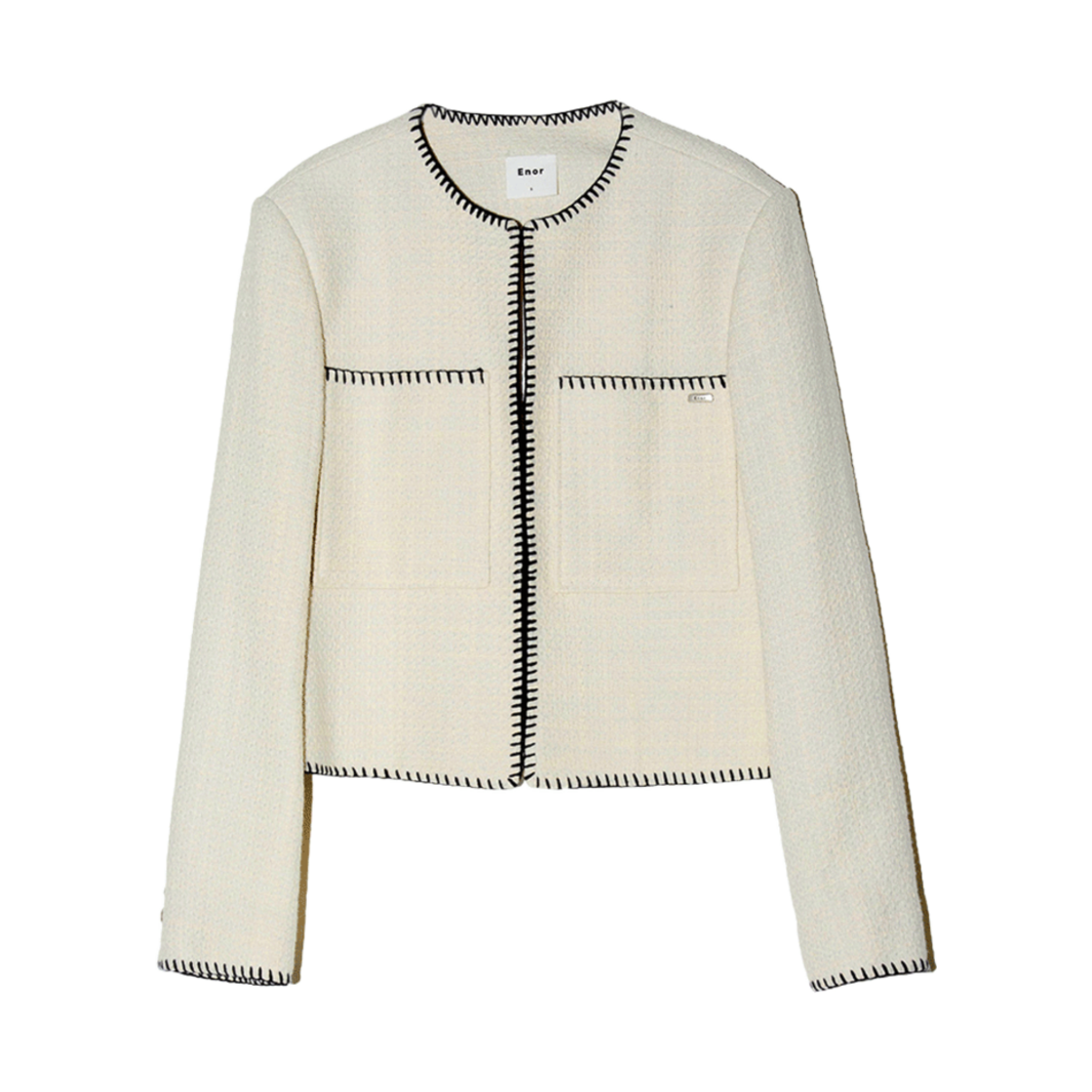 엔오르 우먼 멜로 스티치 포켓 트위드 자켓 크림