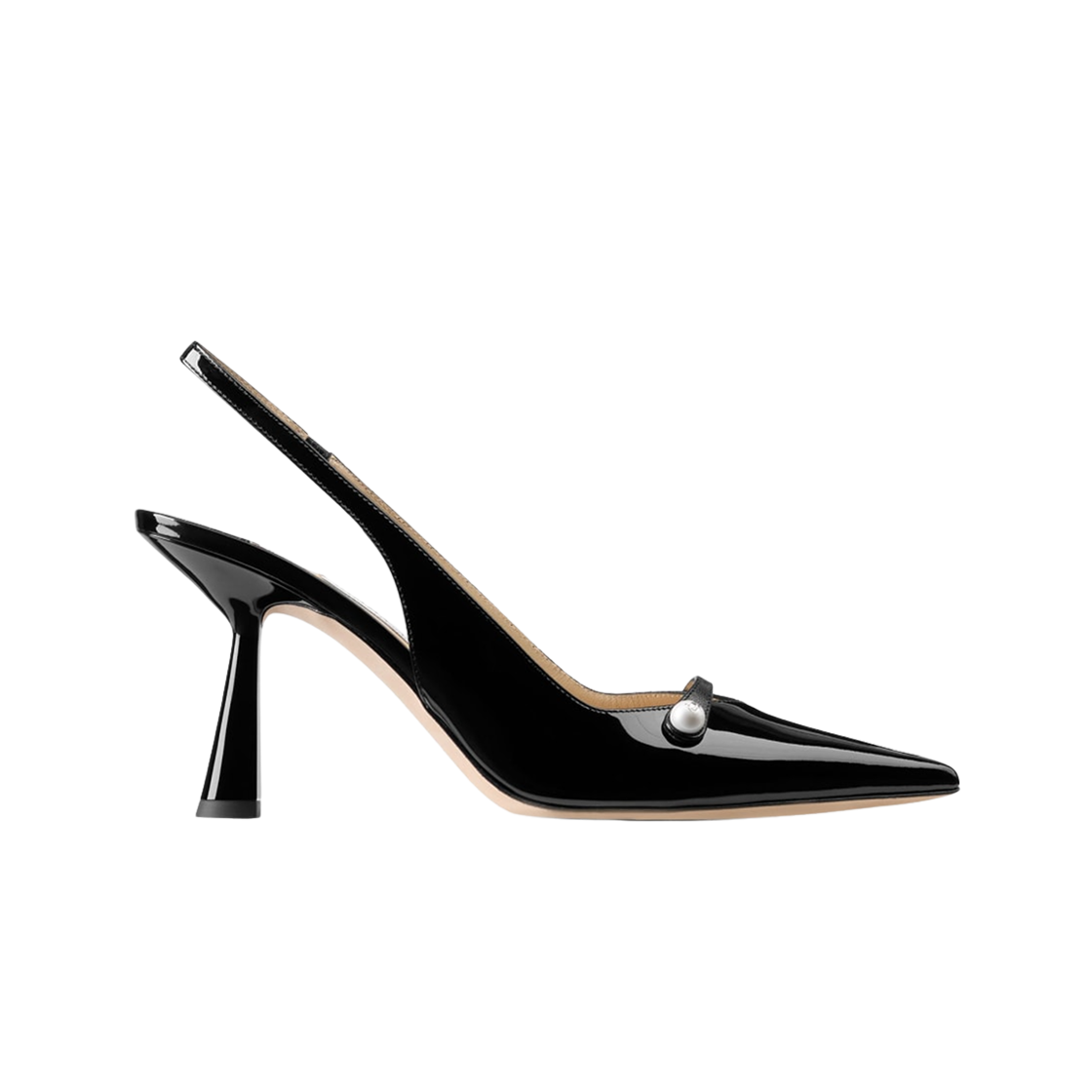 (W) 지미추 아미타 85 페이턴트 나파 레더 슬링백 블랙