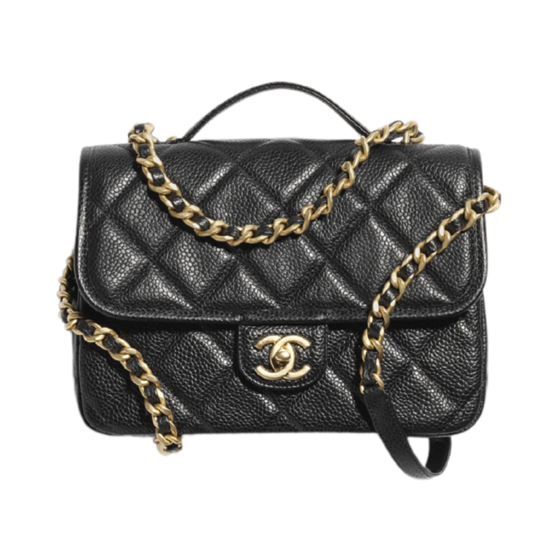 샤넬 25 스몰 핸드백 그레인드 카프스킨 & 골드 메탈 블랙