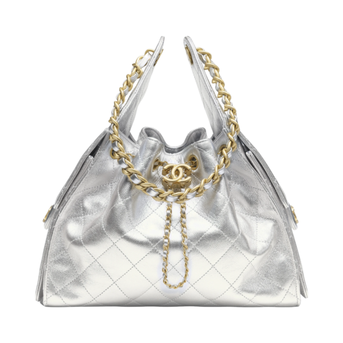 샤넬 25 스몰 핸드백 메탈릭 그레인드 카프스킨 & 골드 메탈 실버리