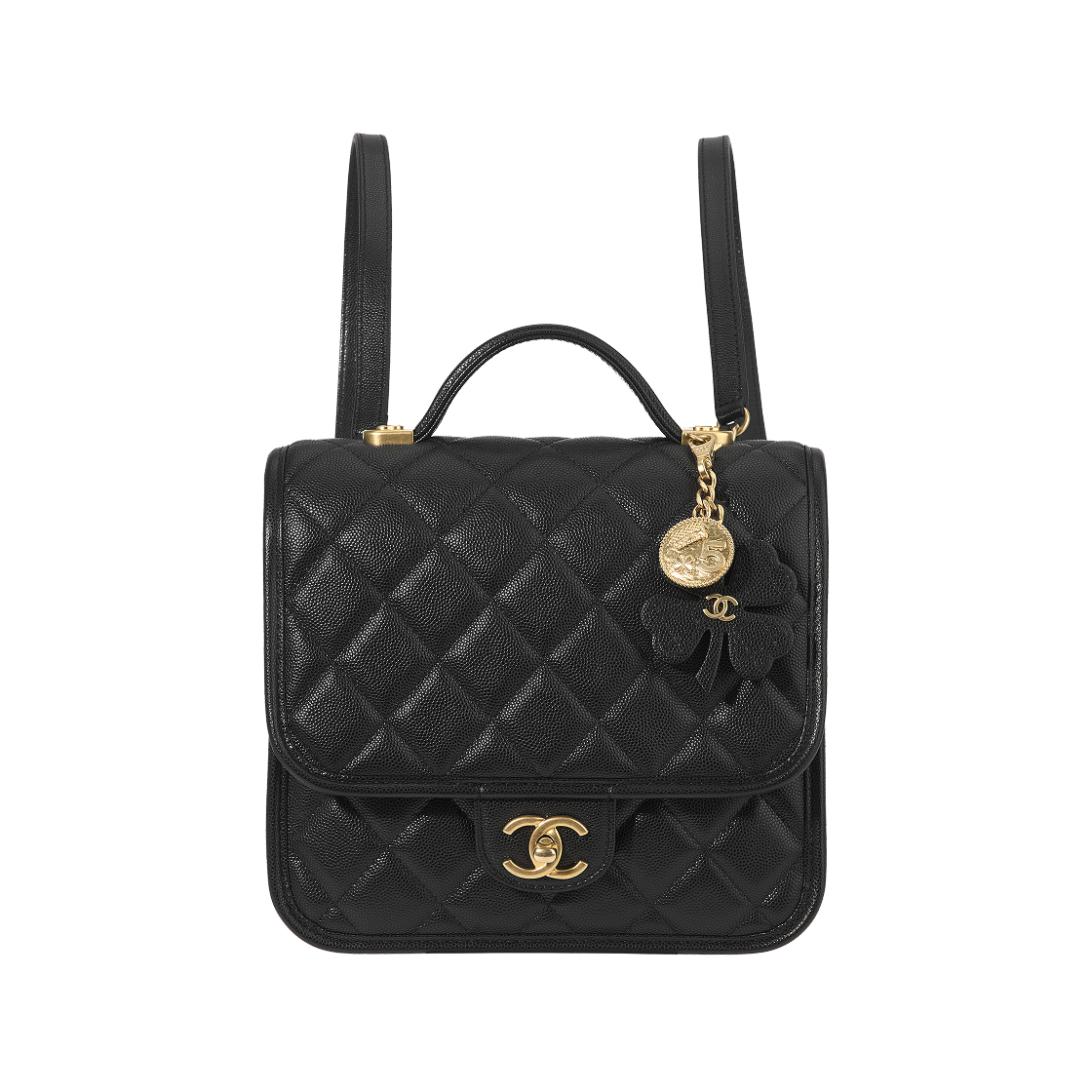 샤넬 스몰 백팩 그레인드 카프스킨 & 골드 메탈 블랙
