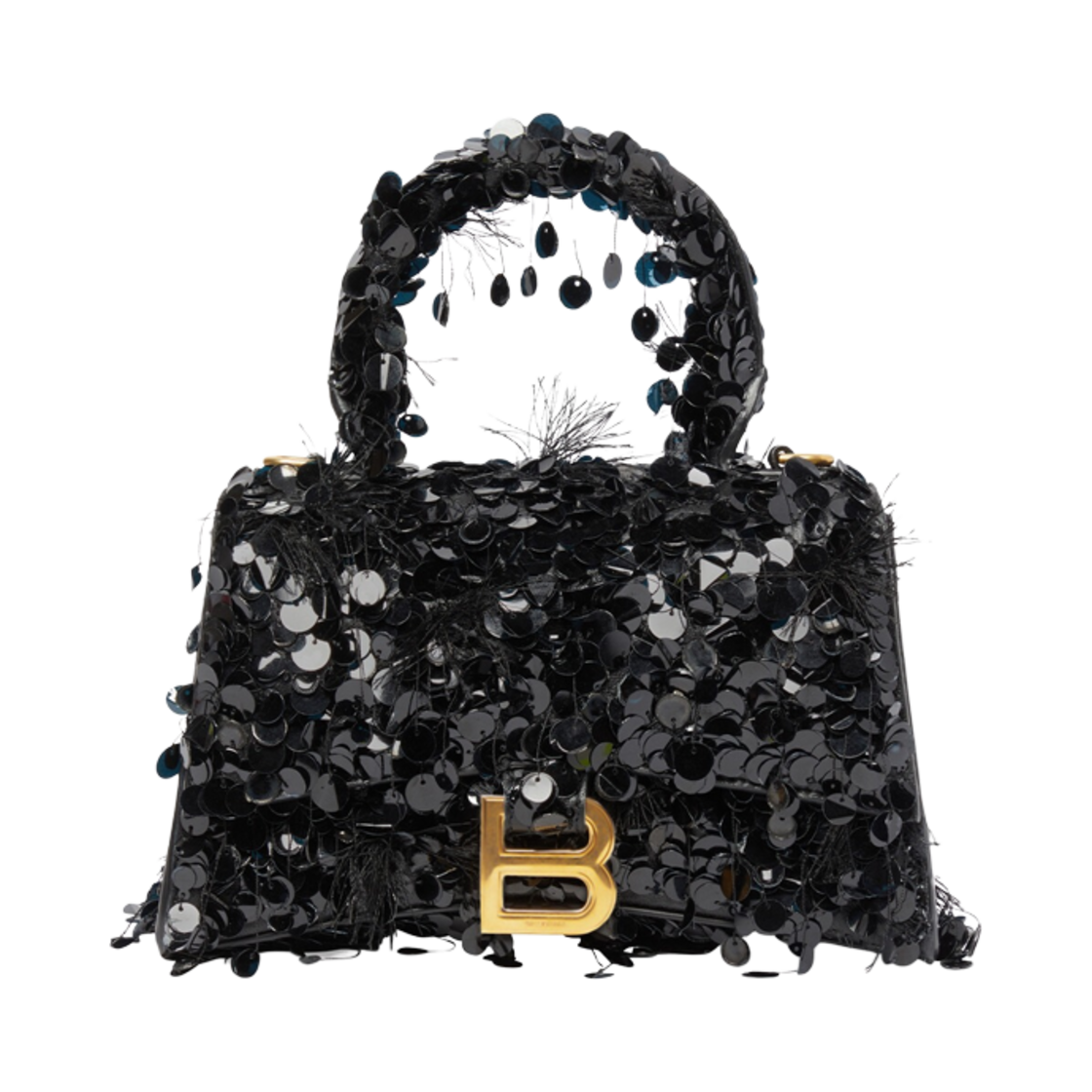 발렌시아가 아워글래스 XS 핸드백 체인 자수 블랙