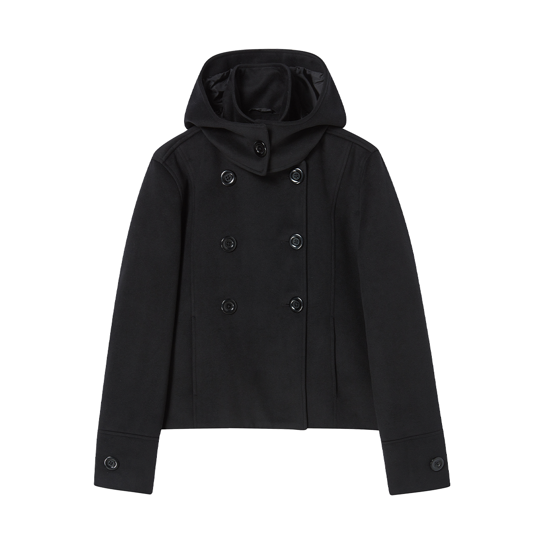 로긴 앤 로지 후드 포인티드 하프 코트 블랙
