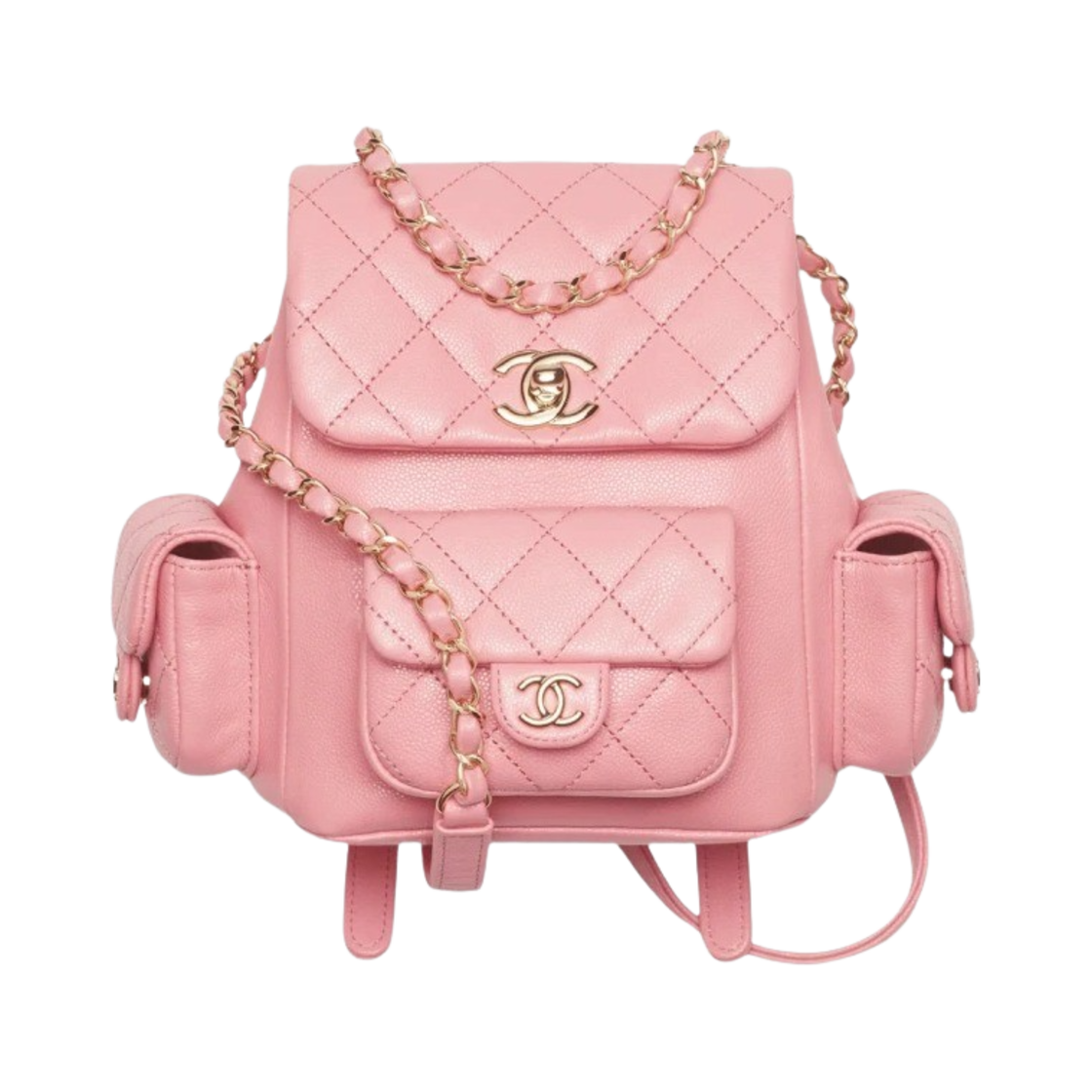 샤넬 스몰 백팩 그레인드 샤이니 카프스킨 & 골드 메탈 코랄 핑크