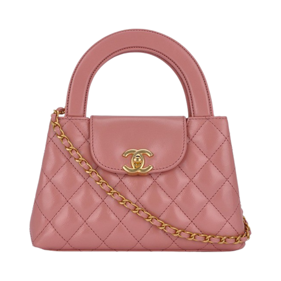 샤넬 미니 쇼핑백 샤이니 빈티지 카프스킨 & 골드 메탈 코랄 핑크