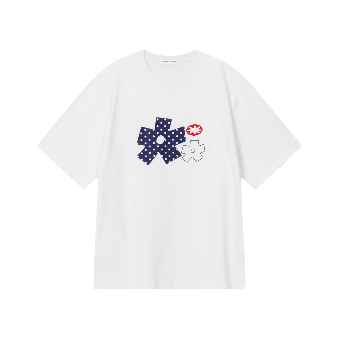 슬로우 레코드 하우스 폴카도트 스타 티셔츠 화이트