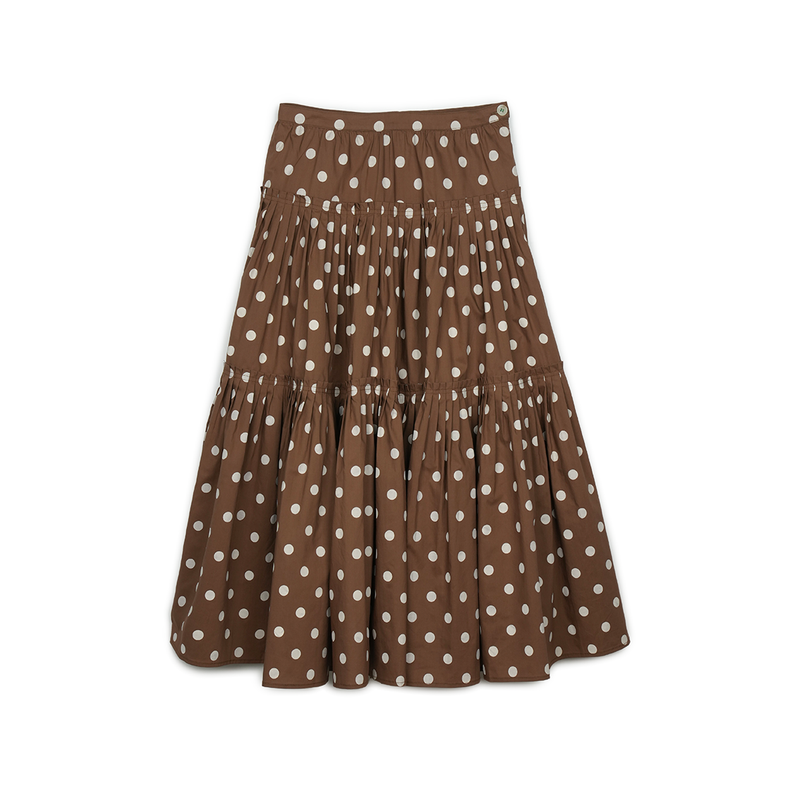 그린버터 폴카 도트 플리츠 스커트 브라운