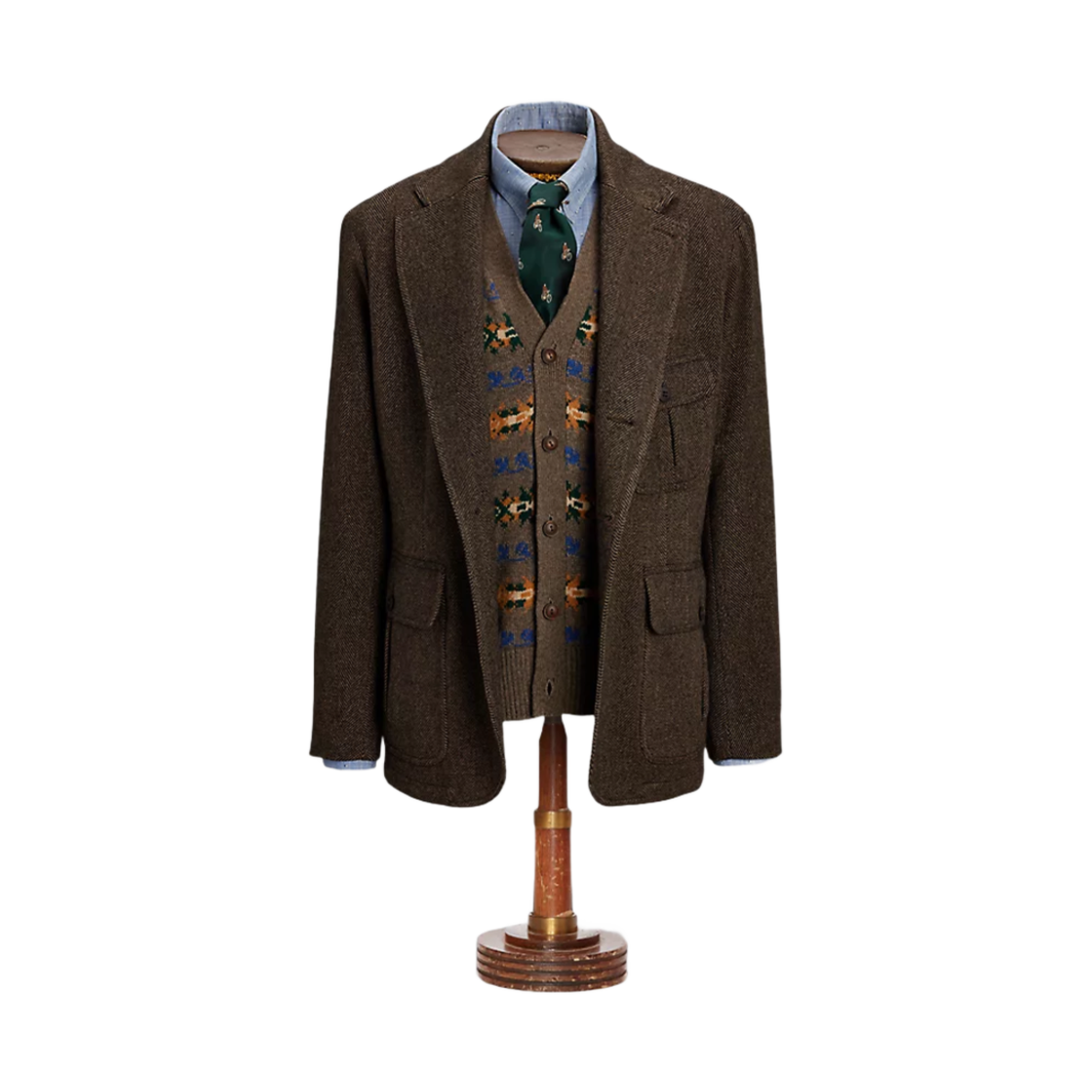 더블알엘 언컨스트럭티드 헤링본 스포츠 코트 브라운 멀티
