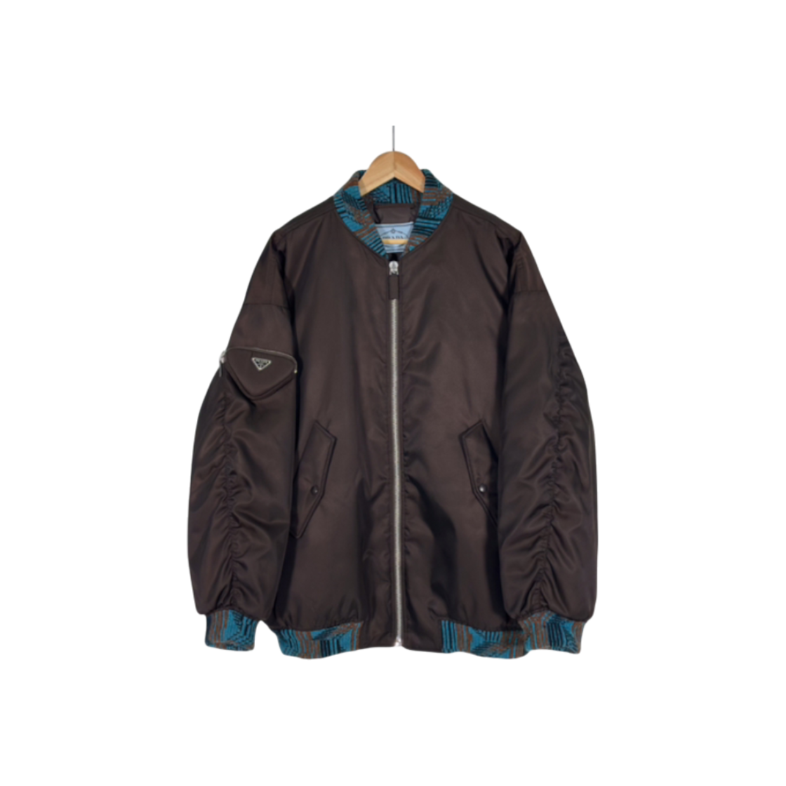 프라다 라프시몬스 리나일론 삼각로고 포켓 니트 봄버 자켓 브라운 M