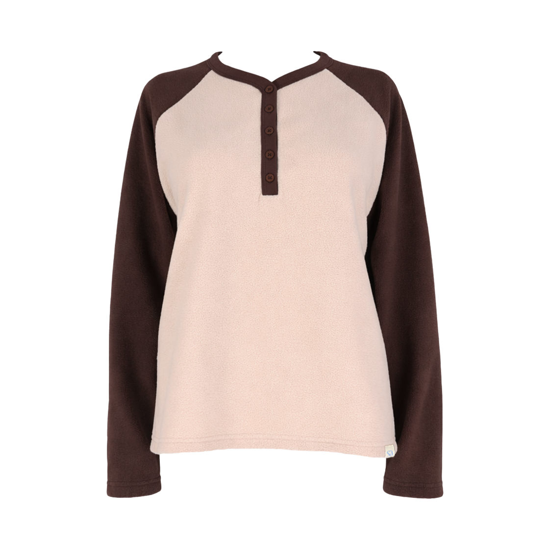 사유 플리스 헨리넥 레글런 티셔츠 크림