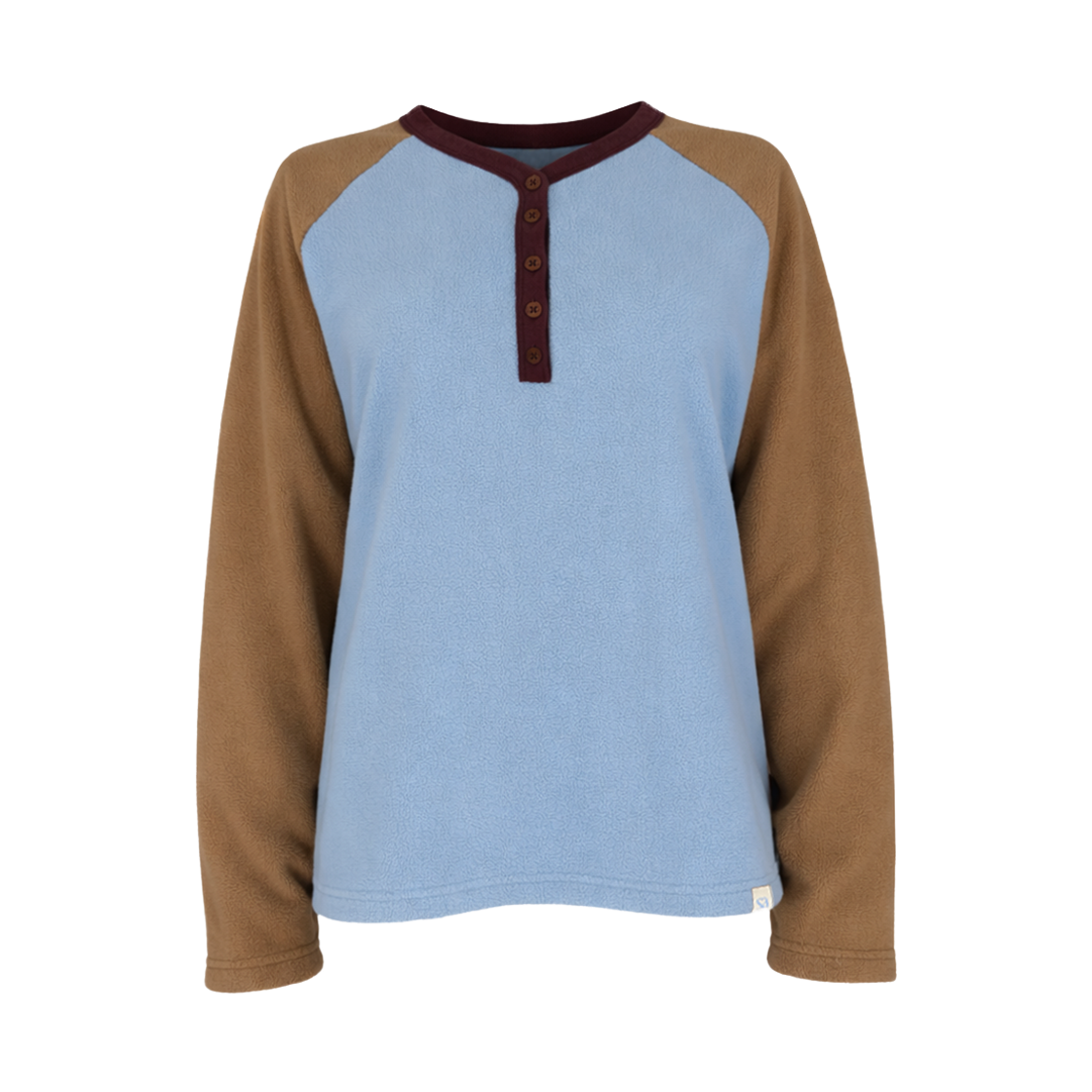사유 플리스 헨리넥 레글런 티셔츠 블루