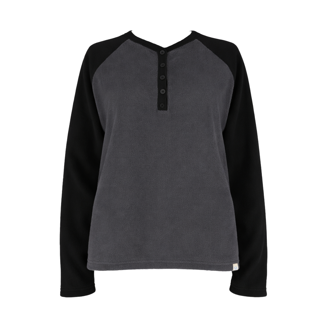 사유 플리스 헨리넥 레글런 티셔츠 차콜