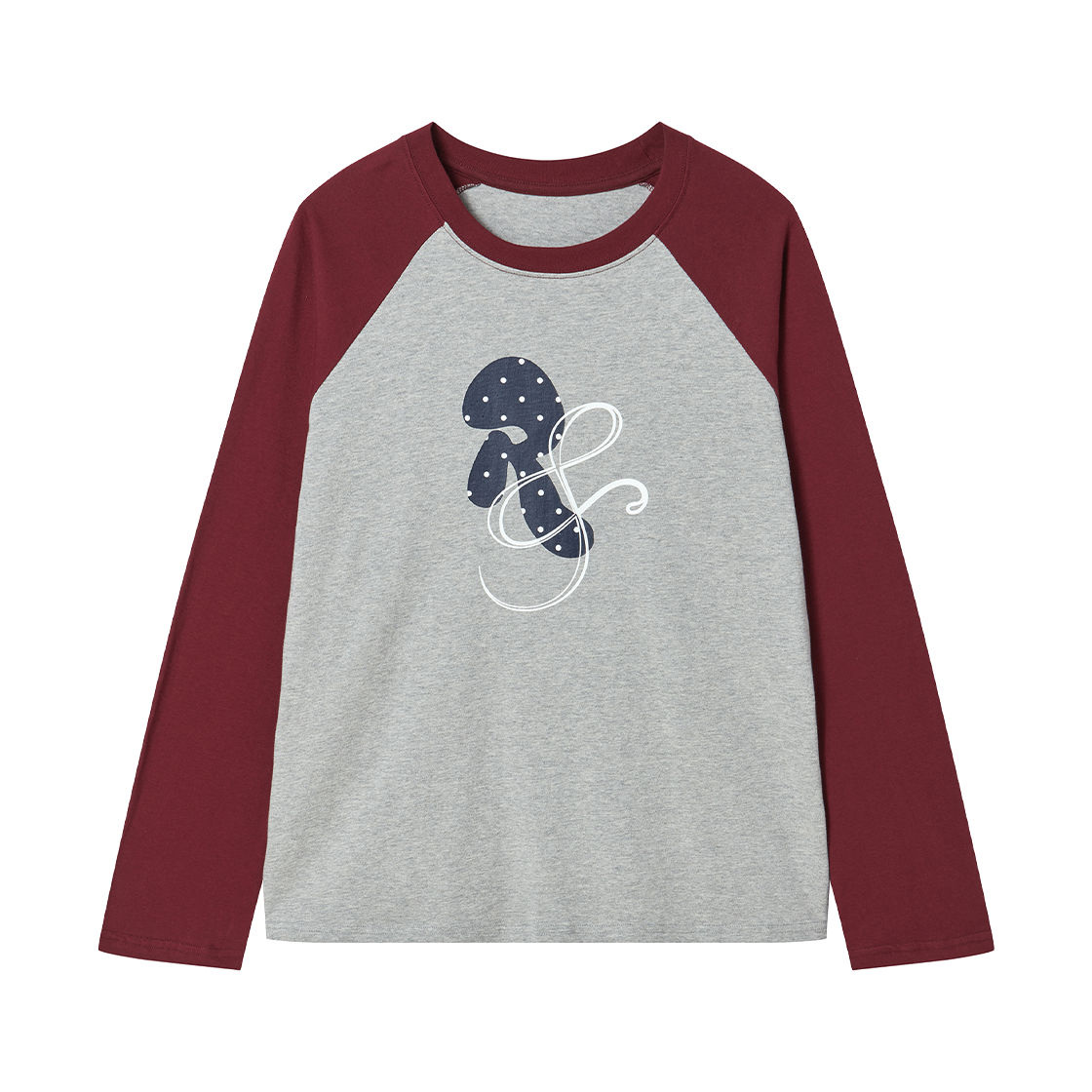 로긴 앤 로지 하트 프린티드 코튼 나그랑 롱슬리브 그레이