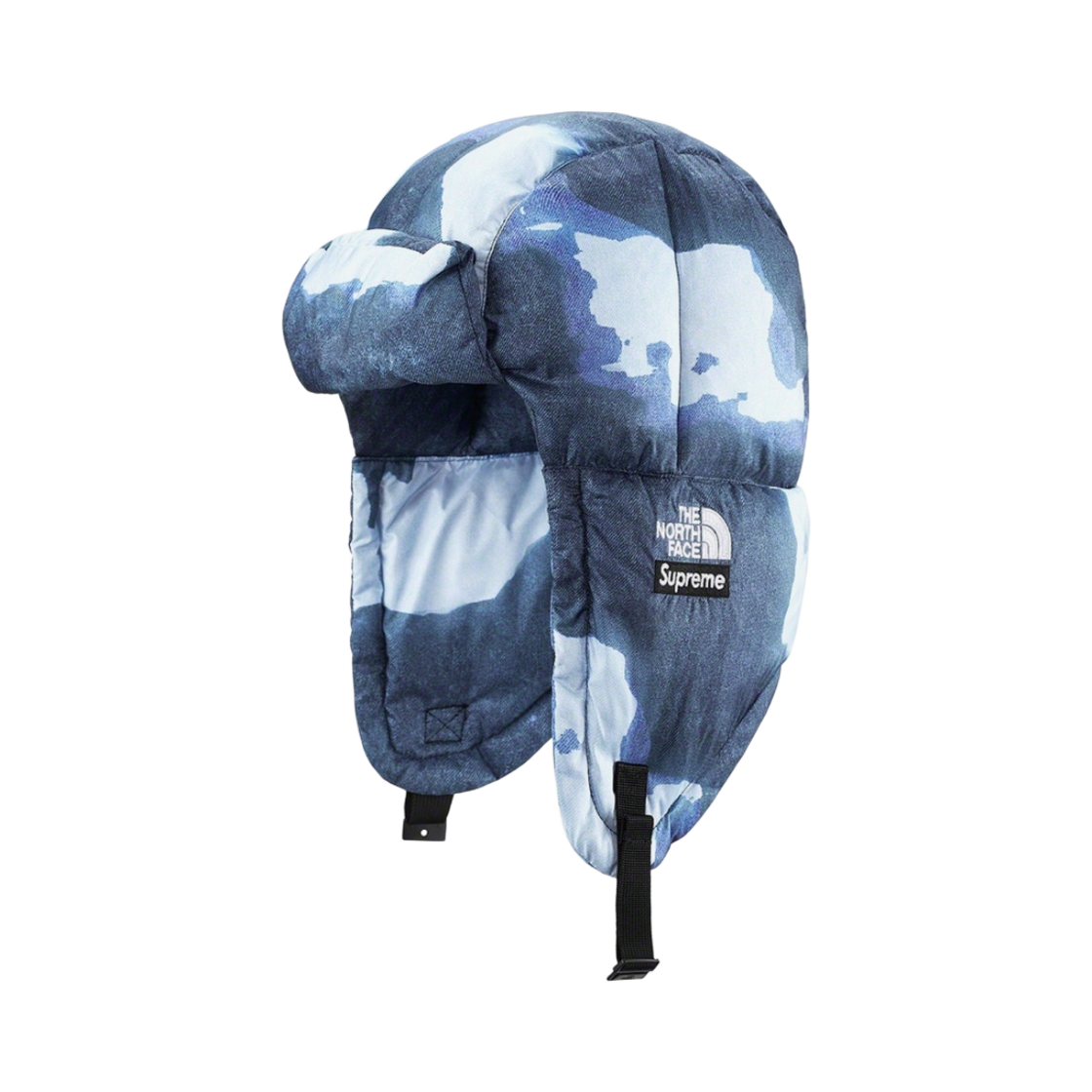 슈프림 x 노스페이스 블리치드 데님 프린트 눕시 트루퍼 인디고 - 21FW