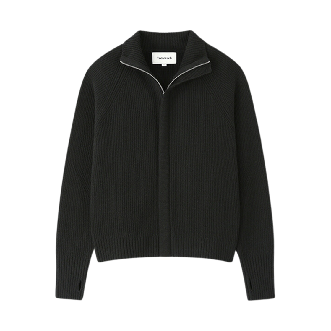 토니웩 슈퍼 파인 메리노 울 플래킷 집업 니트 블랙